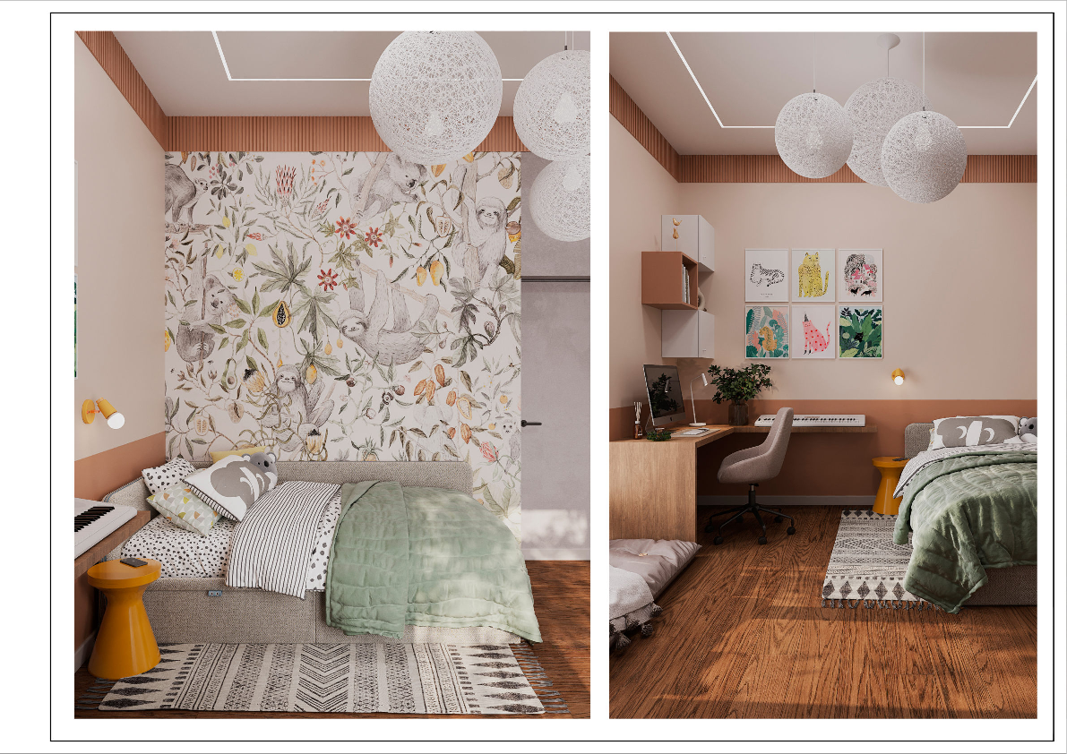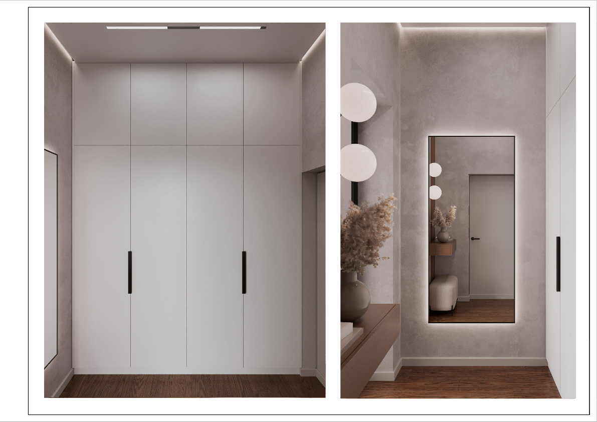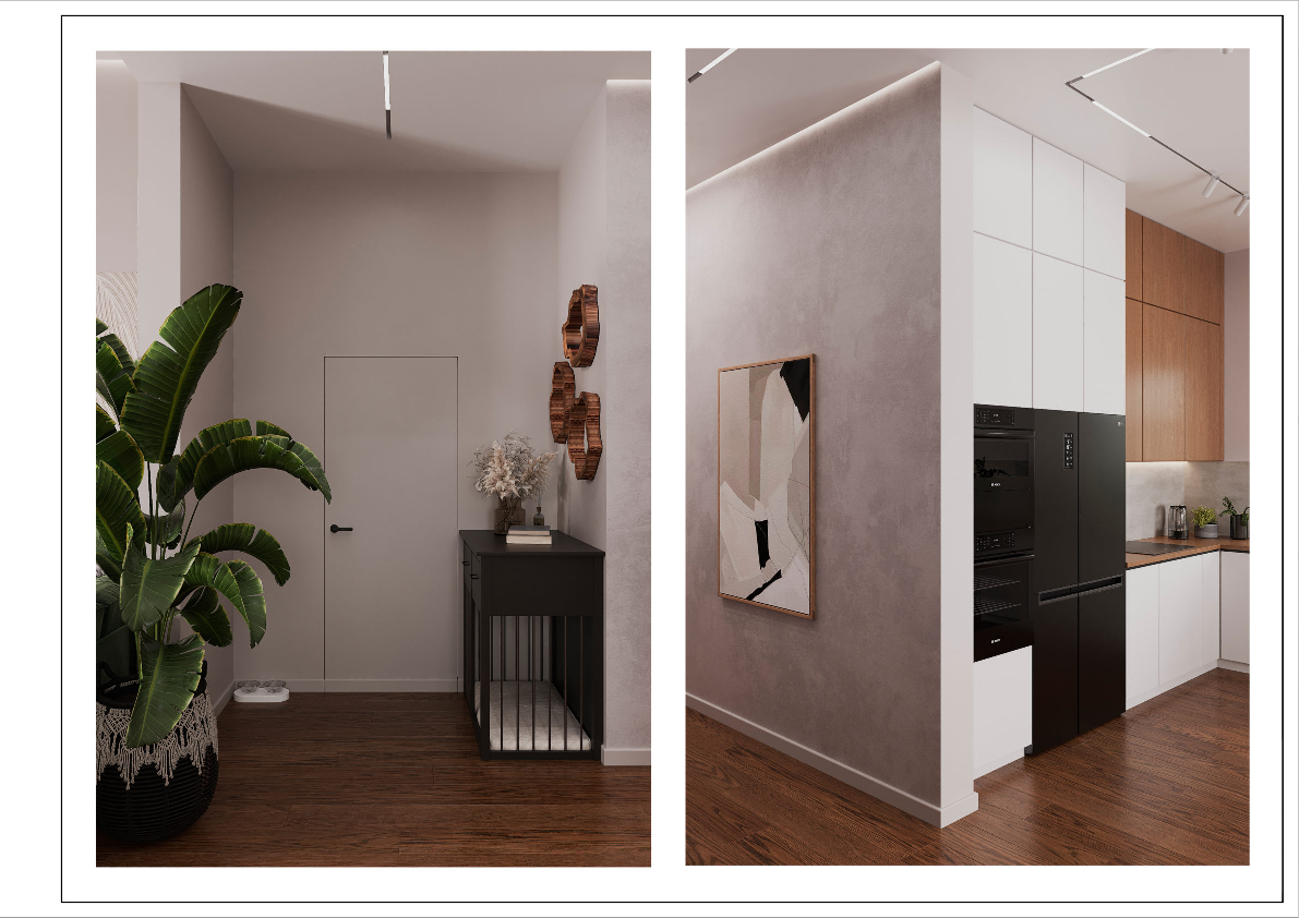 Разрабатываем концепцию интерьера, утверждаем дизайн, основные цвета, наполнение квартиры по коллажам и переходим к визуализации