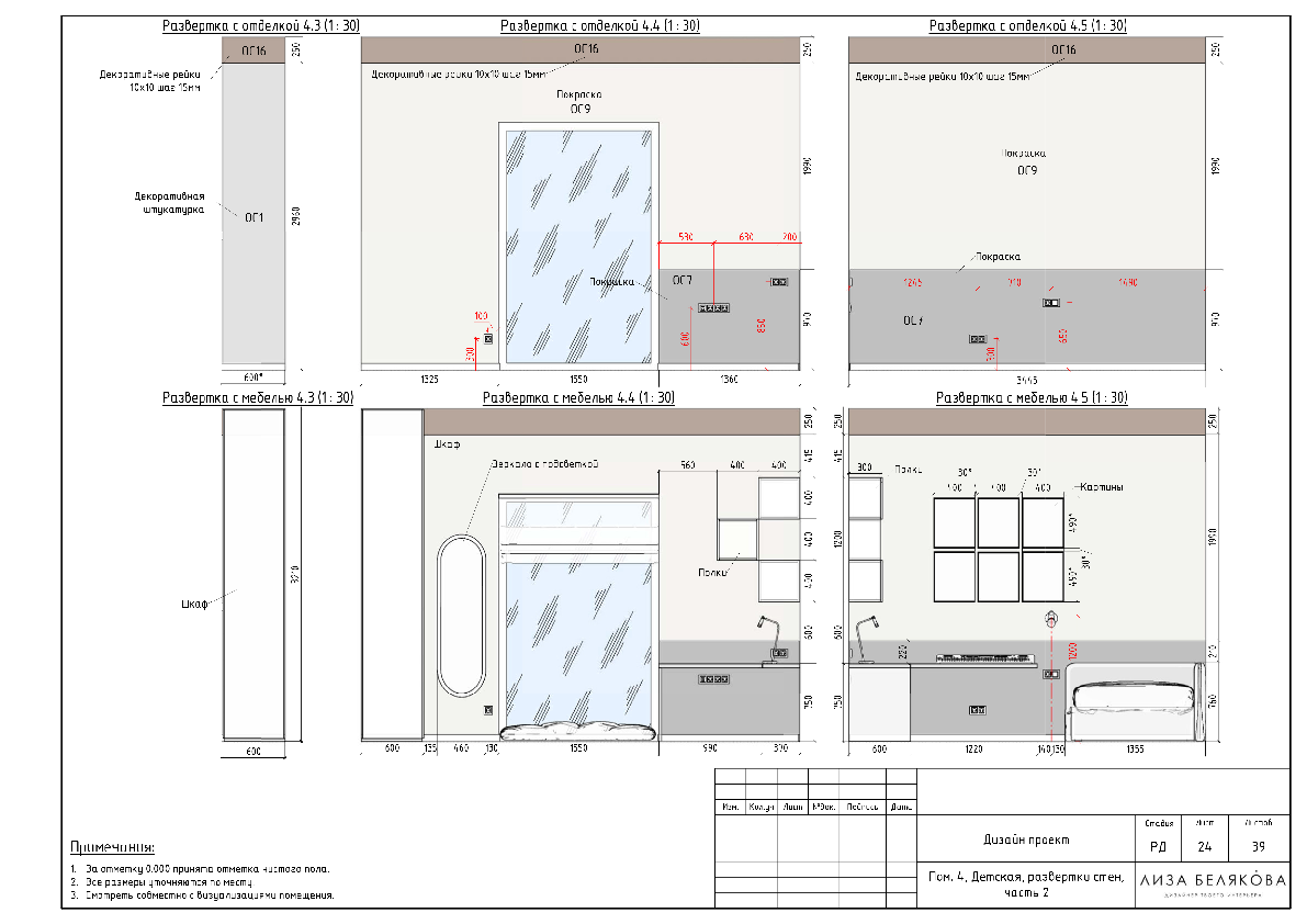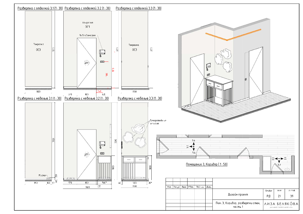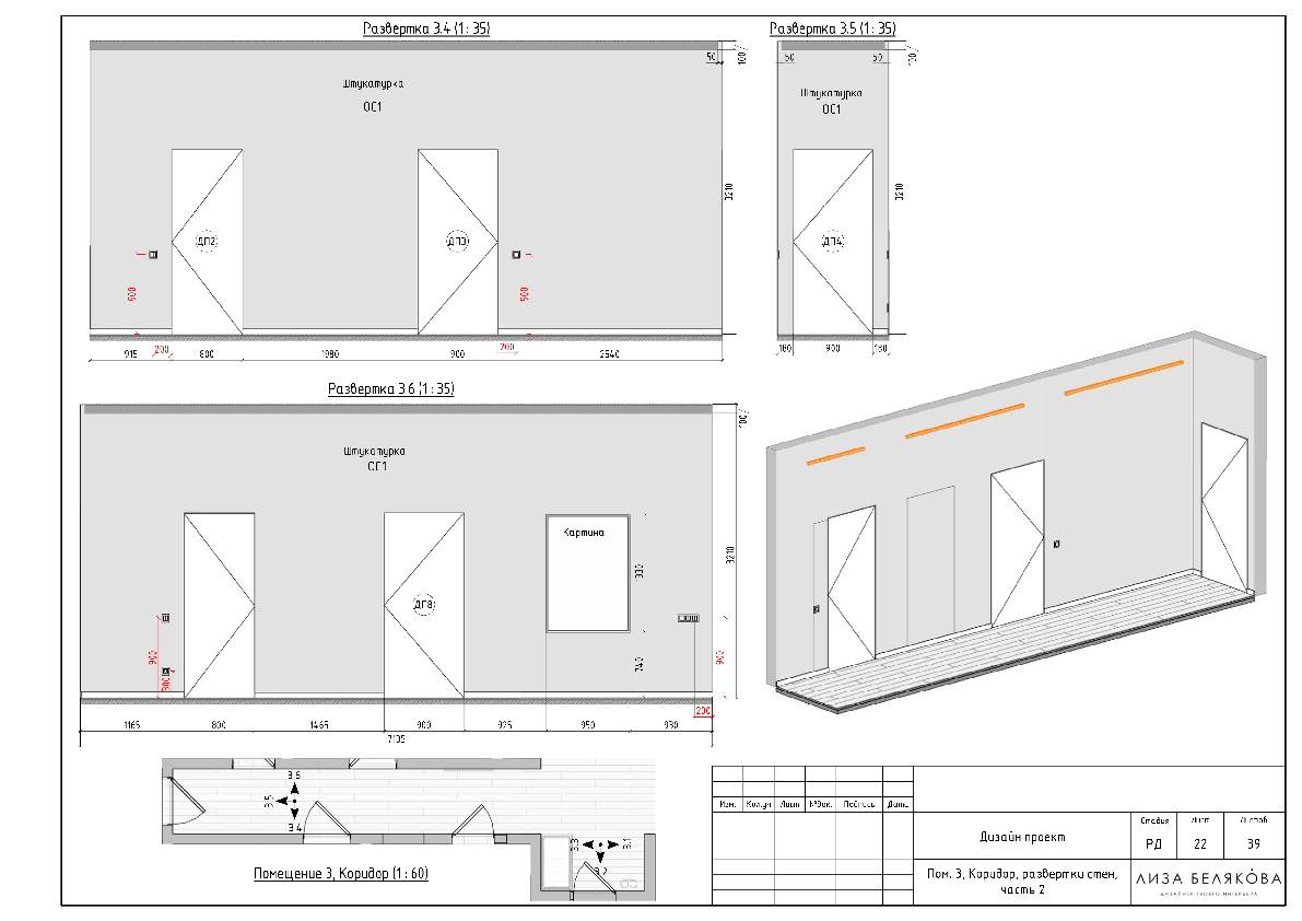На этом этапе мы занимаемся разработкой полного комплекта чертежей дизайн-проекта. Чертежи позволяют строителям реализовать проект и точно подготовить смету на работы